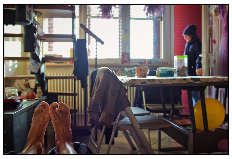 È stata sua moglie (benedetta se ne pentirà!). Chiama Gianni che in materia ne sa qualcosa e si lascia sedurre. Non sarà più come prima. Shopping compulsivo di innumerevoli fotocamere vintage. Scatti ovunque. Rullini appesi ad asciugare in doccia, base di lancio verso la ricerca spasmodica di quei puntini, gli interrogativi che caratterizzano il suo quotidiano pensiero. E da lì: lettere, note ed immagini rimestate. Dove sta la musica? Nel ritmo delle parole generate da ogni singolo fotogramma. Oggi Luca ama, adora relazionarsi e isolarsi al contempo, ma sopratutto sta facendo pace con tutti i suoi perchè.