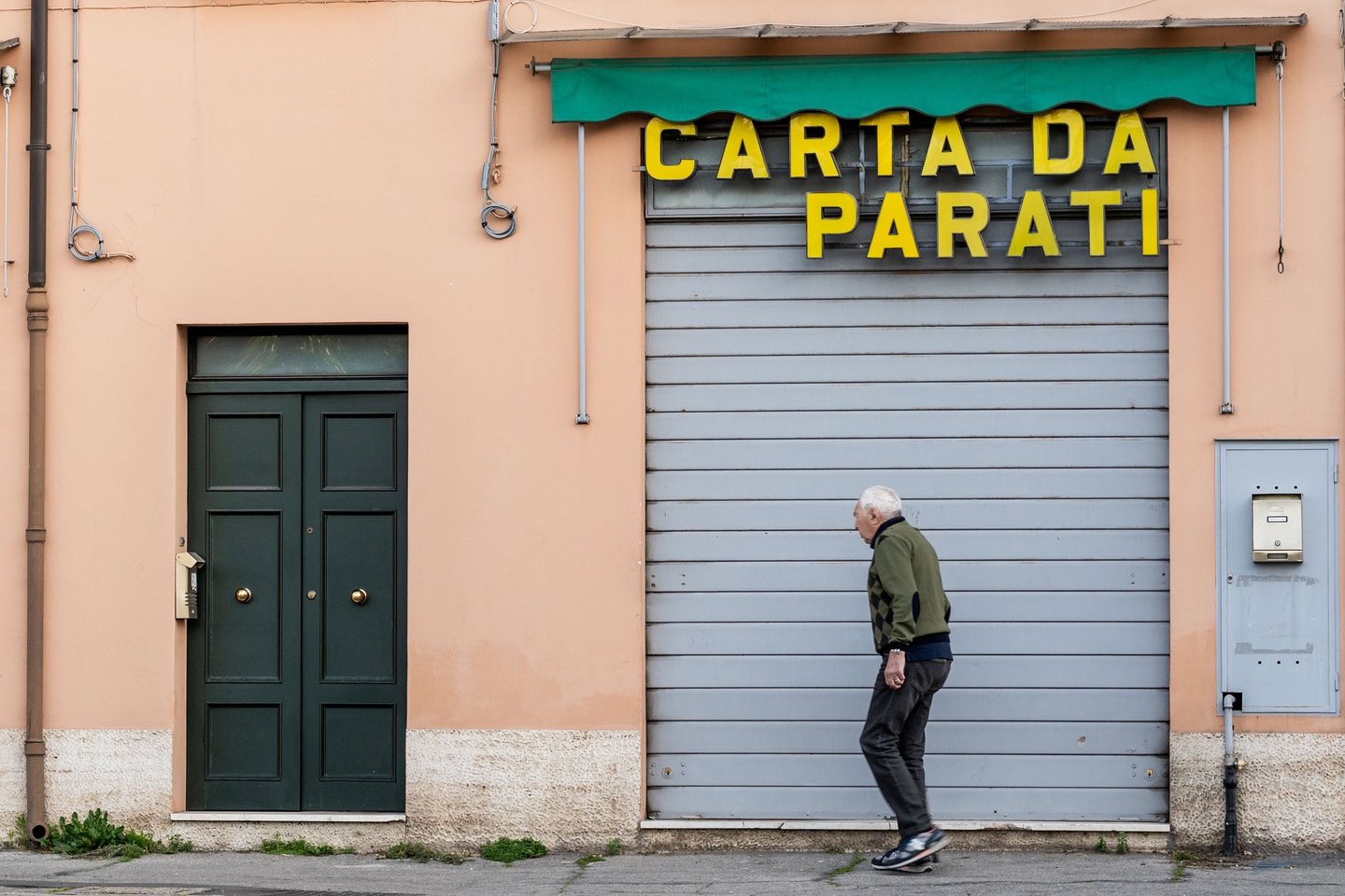 Appesi alla vita, come carta da parati. Uomini meccanici, apparati.