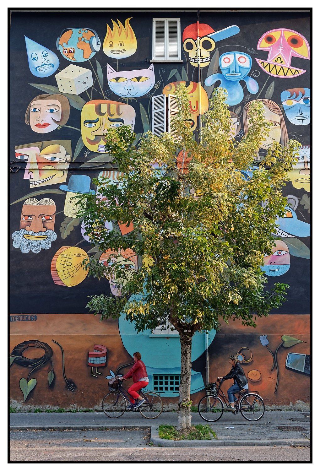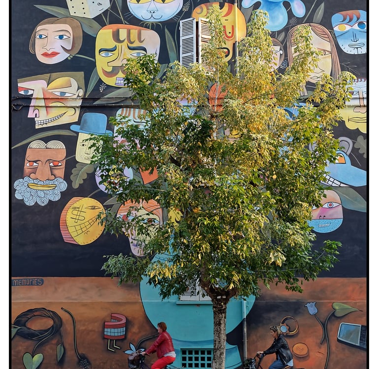 D’improvviso il giorno si è spento. La chioma di un albero dalla calvizie prossima e certa sottolinea i miei pensieri già cupi, così densi da ricordare la nebbia di periferia i primi di novembre. Sono in terra straniera e sebbene debba confondermi con la trama locale è evidente che non sia di queste parti. Come il rosso che indosso, che ho scelto con perizia. Un segnale distintivo per dire : “sono ancora qui, sono viva !”.... Nonostante tutto. Oltre il peso della vita e i mille interrogativi che oggi pedalando per strada, fuori stagione e anzitempo, sono esplosi sopra il mio capo abbigliando le braccia di una pianta. Rosso. Fuori moda ma vitale sotto una coltre di neve metropolitana, bizantina.