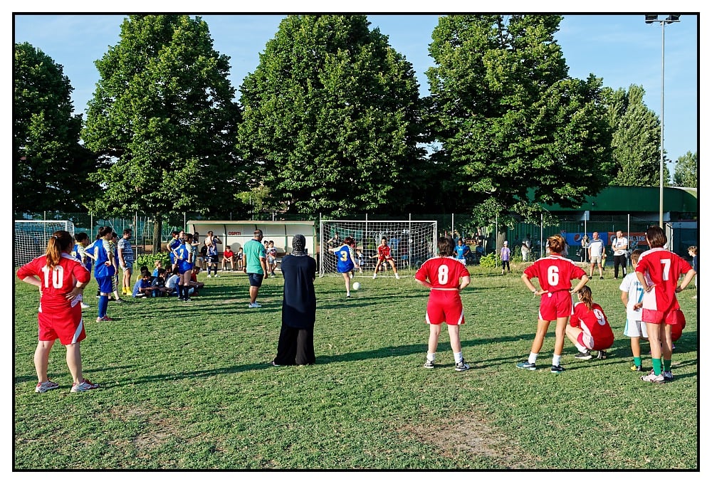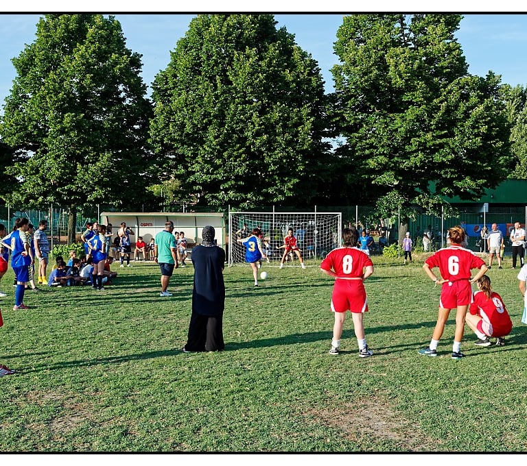 Un assist al bacio. Troppo facile come segnare a porta vuota, uscirsene con bramosia ed affermare che, sarebbe bello un mondo di un unico colore. In realtà quest’immagine (nulla di tecnicamente trascendentale), mi piace così. Sembra una foto degli anni ‘70, Duemila e settanta. Quando forse riusciremo a convincerci che non occorre uniformare le menti ad un solo pensiero. Piuttosto avere un cuore più grande per farci stare tutto dentro. Con ricettiva mutualità. Nessuna questione geografica. Nè politica. Non fa per me, che dell’arte di governare non so narrare. Che non mi interesso di confini, poiché in fondo per quelli, c’è già qualcuno pagato bene per farteli rispettare. Torneo delle mamme, calcio. Ognuna con un ventre diverso, capace di generare forse un futuro più cromatico di quello che stiamo consumando. Un’associazione non solo sportiva, di quartiere, di quelli “difficili”. Dove è stato semplice ed intonato, passare quattro ore in sint(f)onia.