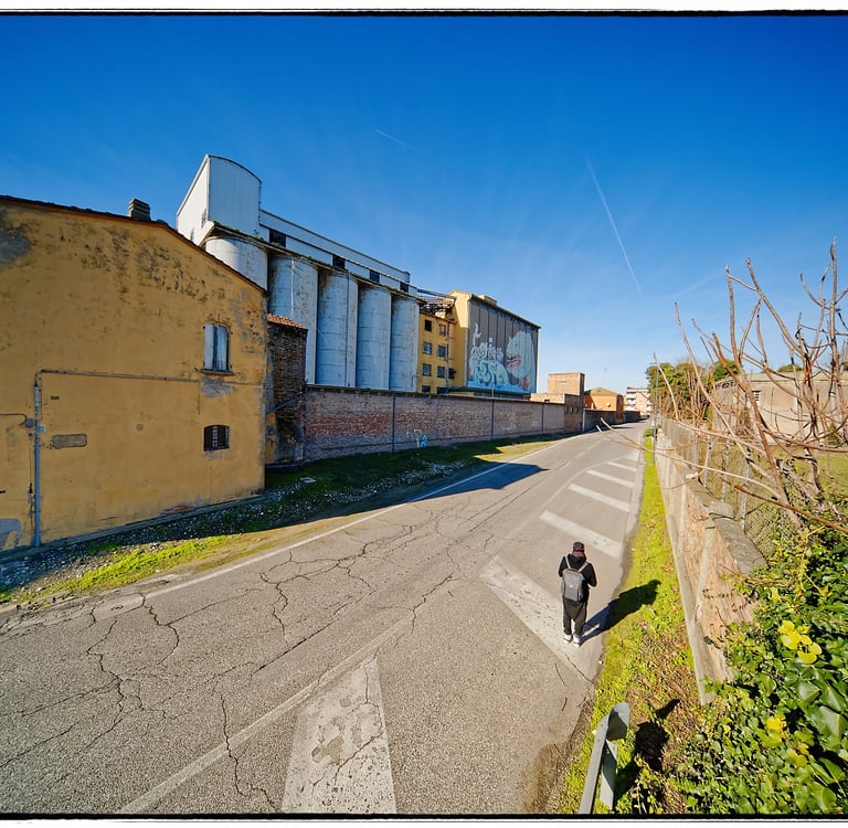 Gli Indigeni ravennati lo sanno, ma per la parte di mondo restante è necessario indicare che la scritta originaria, campeggiava su una recinzione in muratura in Via Salona. Era una strada strategica un tempo e la potevi percorrere se dai salotti del centro dovevi raggiungere il proletariato industriale. Costeggiando la Darsena e proseguendo verso nord, si voltava leggermente a destra per via Antico Squero. Tutto dritto e poi improvvisamente lei. Ma proprio improvvisamente.