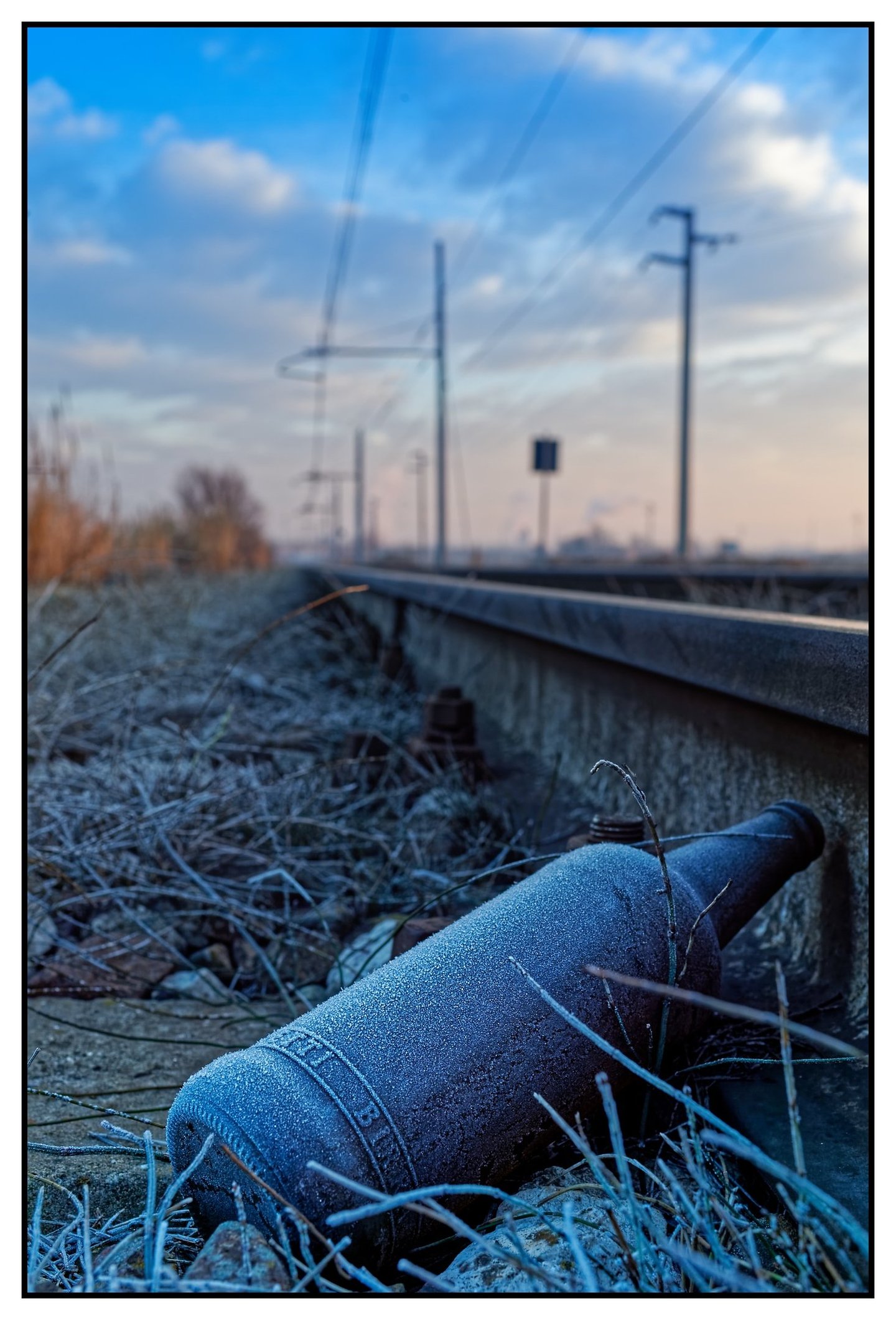 Oggi, il tempo sembrava ibernato. I miei passi, come in un film, si udivano distinti ma doppiati male. Non pezzi di vetro ciò che calpestavo, ma fili d’erba croccanti. C’era un passaggio a livello con le sbarre sbilenche a contrastare il trapasso, sbattute lì per farti riflettere nell’ infinita attesa di andare oltre. Alla mia sinistra una bottiglia. Abbozzo un sorriso. Quanto tempo sprecato a cercare consensi quando io stesso dovevo con-sentirmi. Capito che tipo di sete?